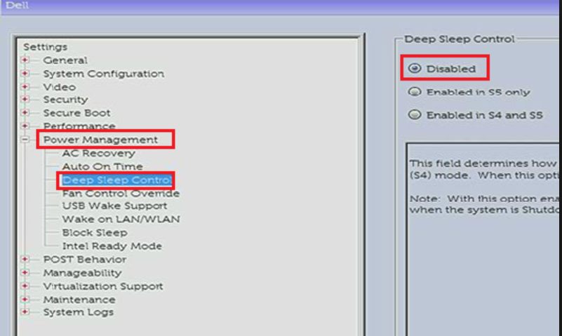 1. BIOS -> Power Management -> Deep Sleep Control -> Disabled